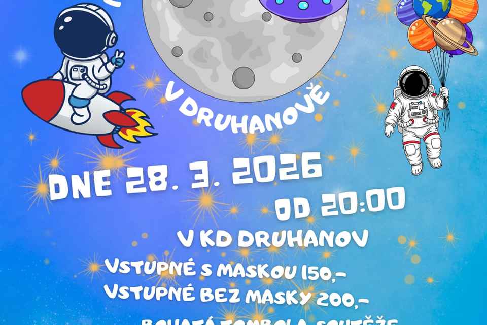 28. 3. 2026 20:00 – 1. 3. 2026 04:00 | kulturní | Druhanov 11 - kulturní dům Maškarní ples pro dospělé
