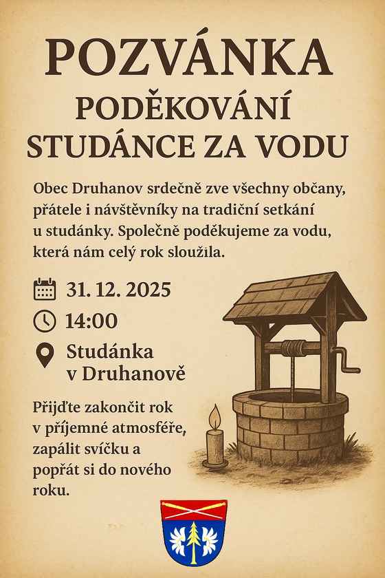Poděkování studánce za vodu Kdy: 31. 12. 2025 14:00 – 31. 12. 2025 16:00 Kraj: Vysočina Typ akce: kulturní Zpět na kalendář Zobrazit mapu