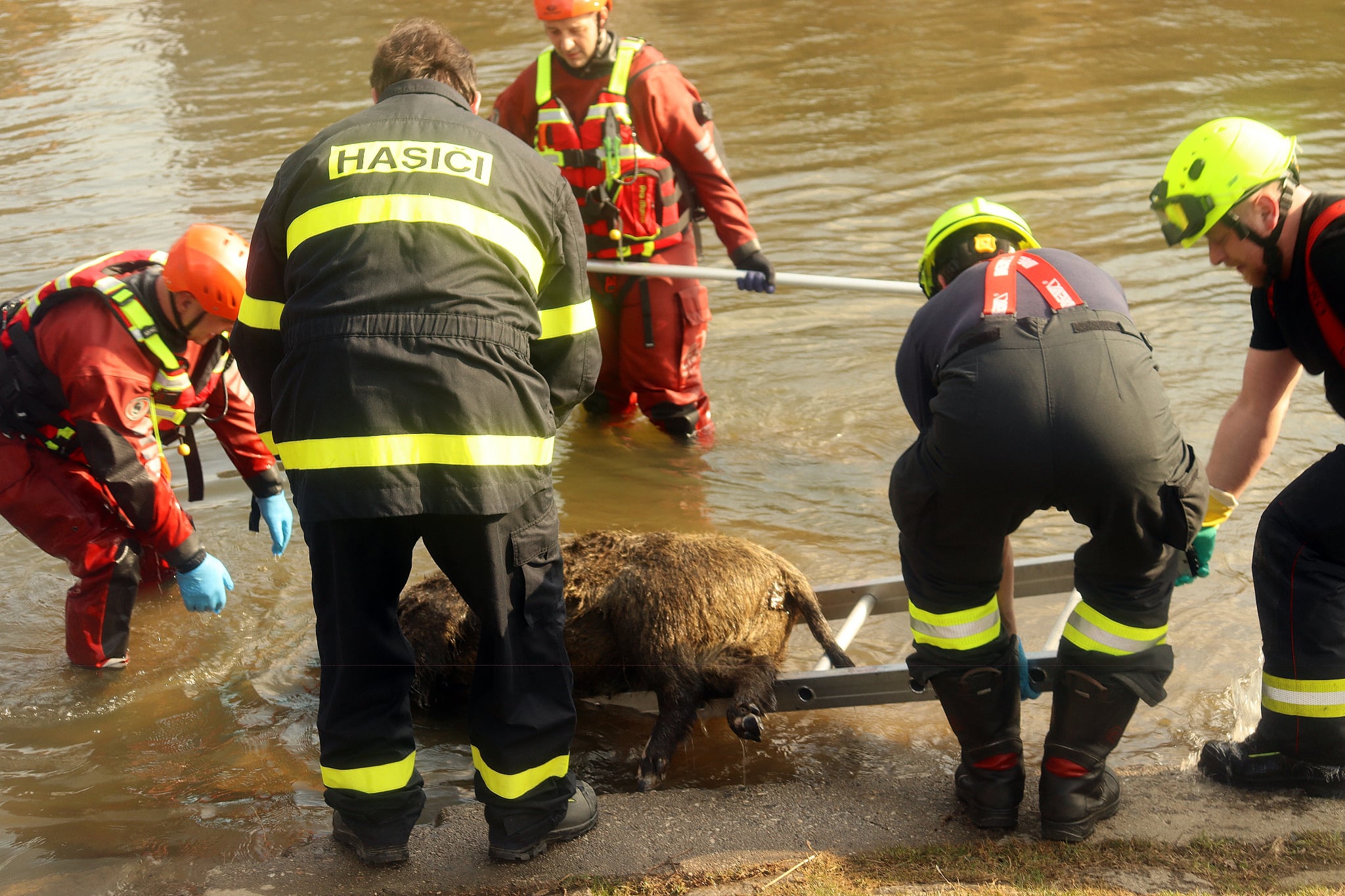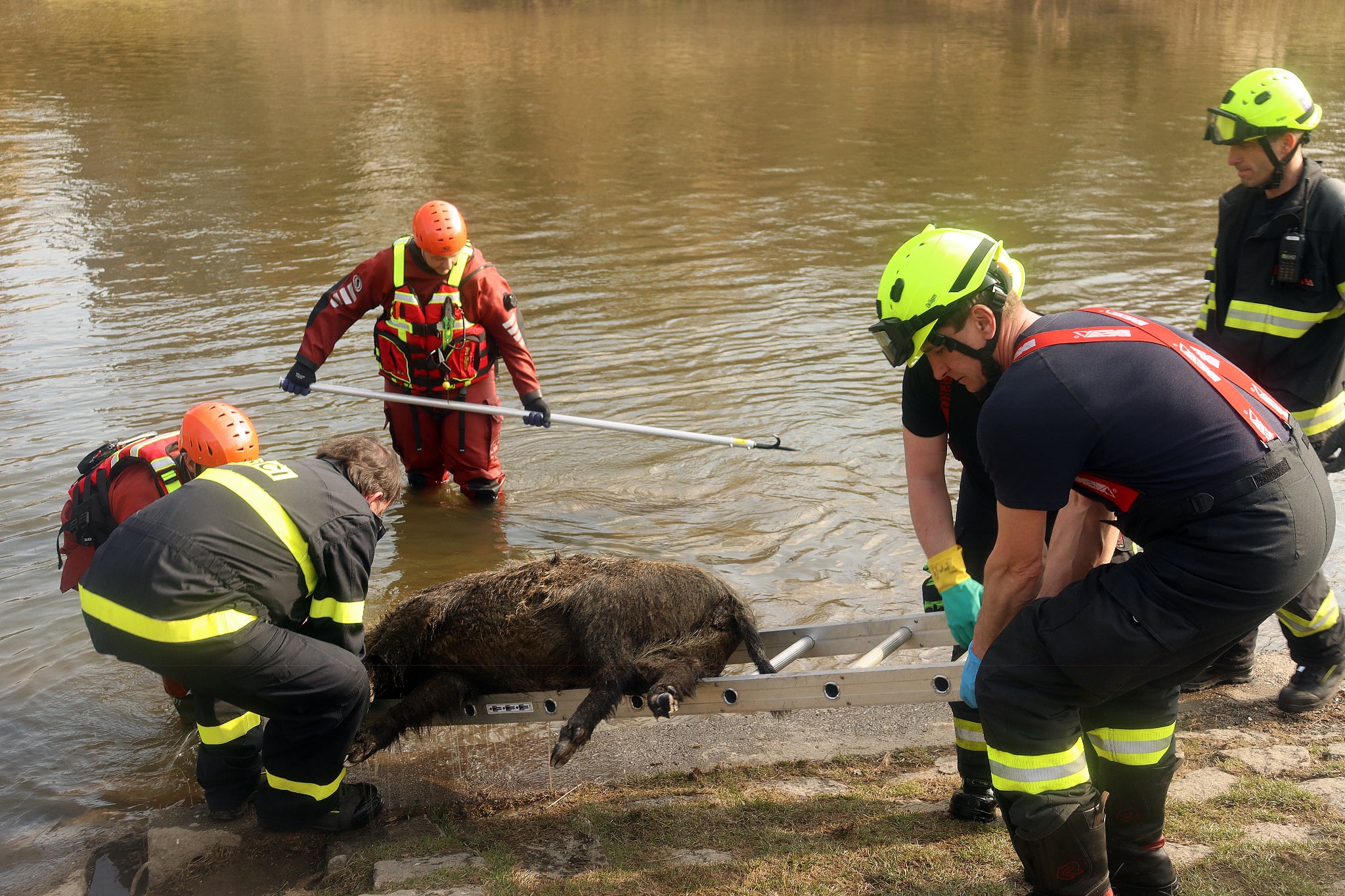 11.03.2026 13:11:02 Technická pomoc - odstranění nebezpečných stavů - Světlá nad Sázavou, most přes řeku Sázavu - vytažení uhynulého divočáka